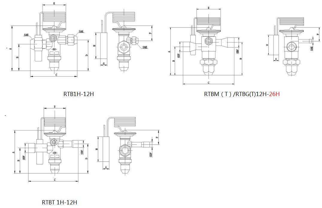 - RTB(T)1H-12H is single valve type, RTB(T)12H-26H is double valve type.